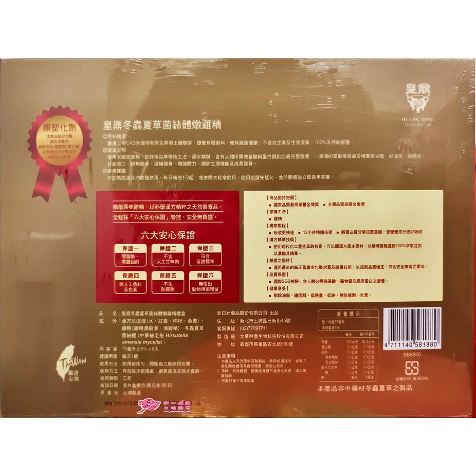 產品名稱 : 皇鼎冬蟲夏草菌絲體燉雞精(8入/盒)