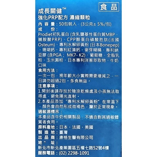 成長關健 強化prp配方 濃縮顆粒(50包/盒) 牛奶口味