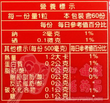 成分 : 日本專利紅蚯蚓粉末(含蚓激素、地龍酵素)120毫克,日本專利ST1胜?100毫克、山苦瓜萃取90毫克,紅景天、 納豆萃取、丹蔘萃取 容量規格 : 60粒/盒 營養標示 : 如圖所示 用法 : 一天2次,每次1-2顆 產地 : 台灣 效期 : 2年內 貨源 : 公司貨