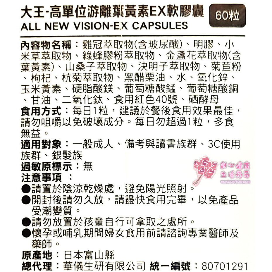 大王 高單位游離葉黃素EX軟膠囊(60粒/盒)