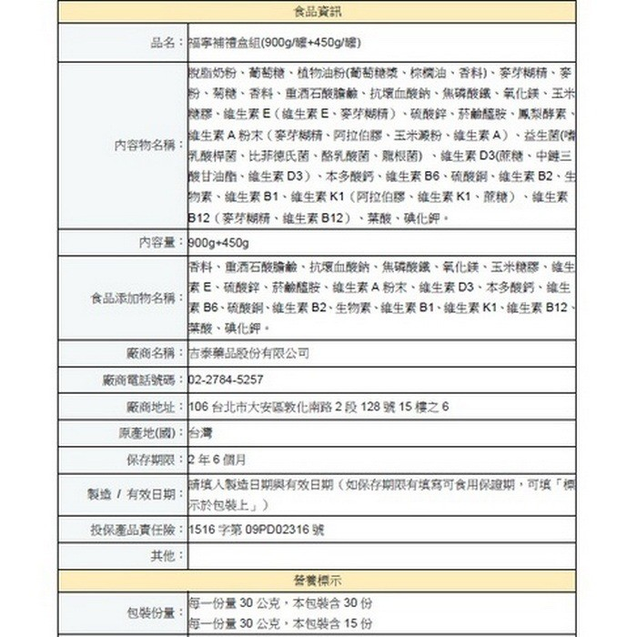 產品名稱 : 【吉泰】福寧補順暢配方禮盒組 (900公克/瓶+450公克/瓶)