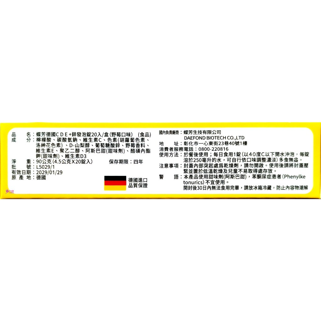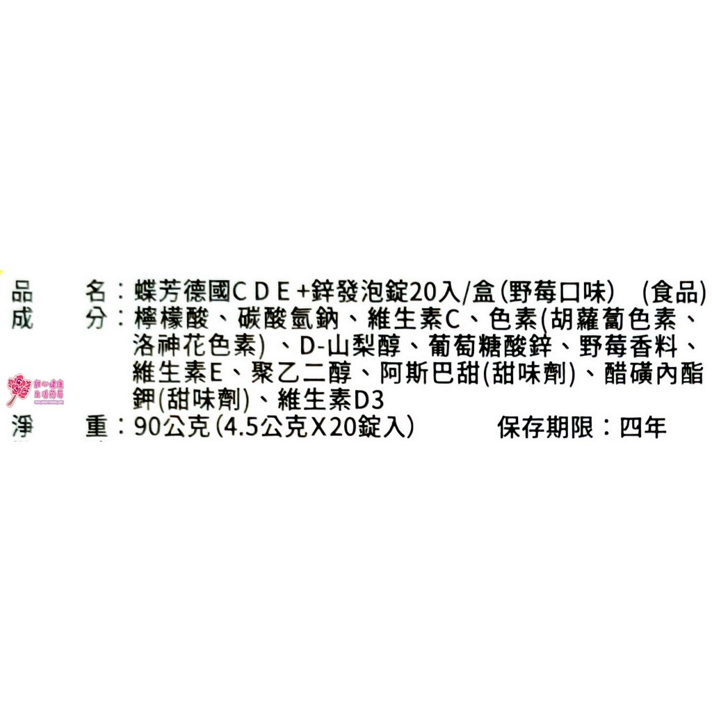 蝶芳 德國CDE+鋅發泡錠 (20入/條) 野莓口味