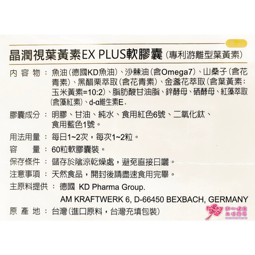 晶潤視葉黃素EX PLUS軟膠囊(專利游離型葉黃素)(60粒/盒)