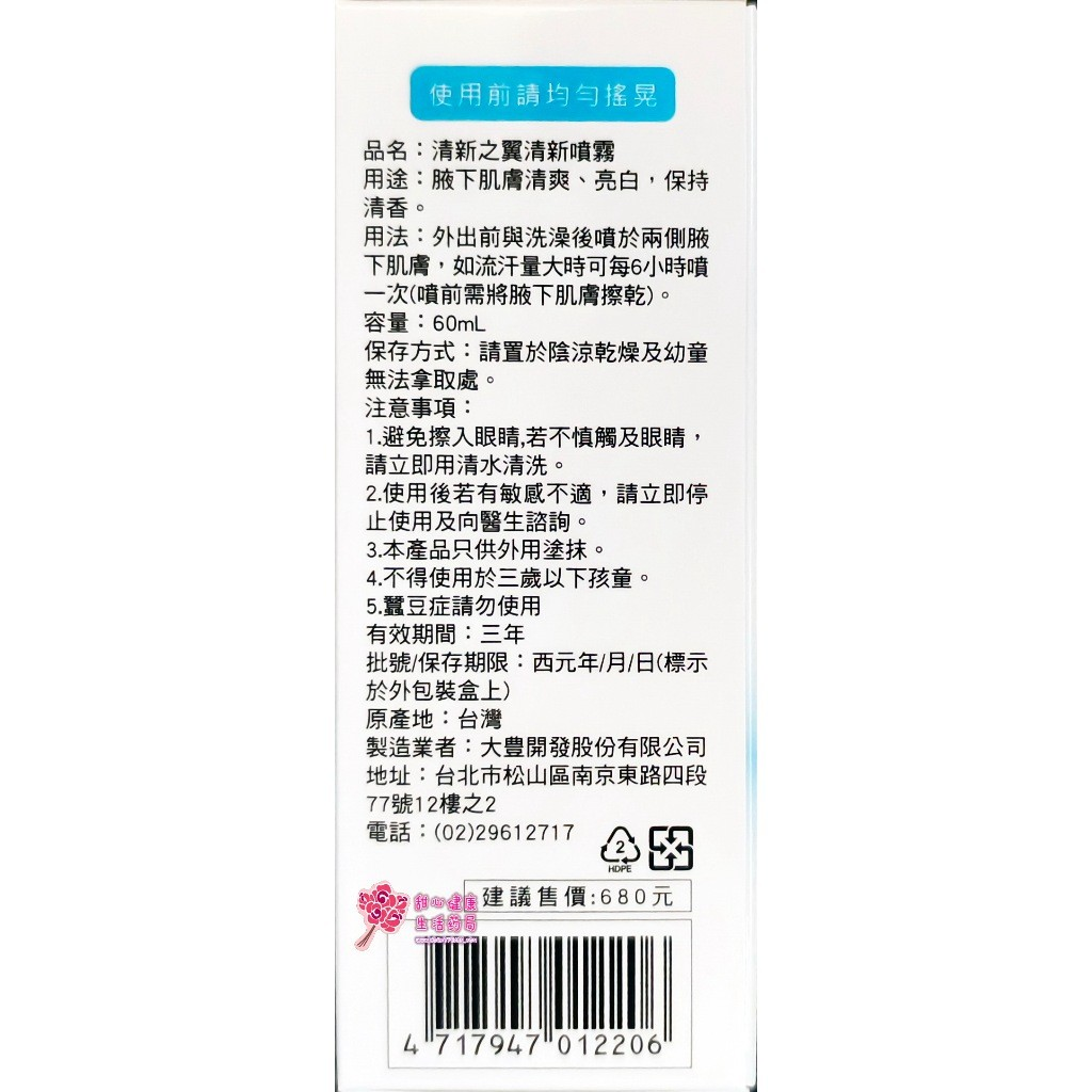 搶先評價 “【大豊】清新之翼清爽噴霧(60ml/瓶) 腋下清爽”