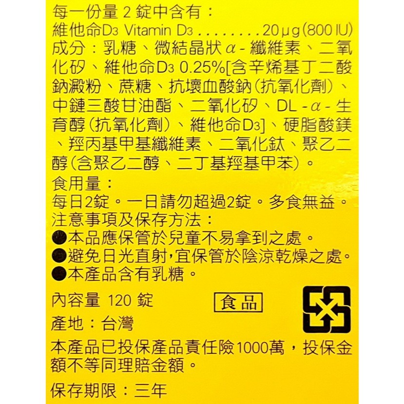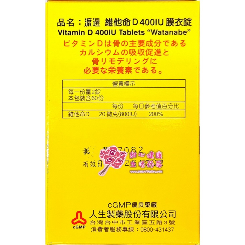 【人生製藥】 渡邊維他命D 400IU膜衣錠 (120錠/瓶) 每錠含維生素D3 400IU