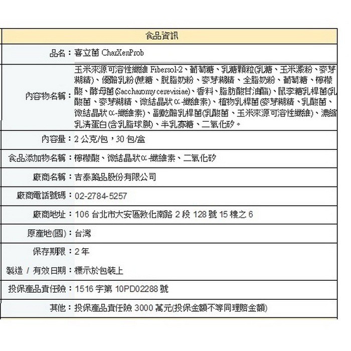 品牌 : 吉泰 產品名稱 : 【吉泰】喜立菌CharXenProb (30包/盒) 容量/規格:30包/盒 成 […]