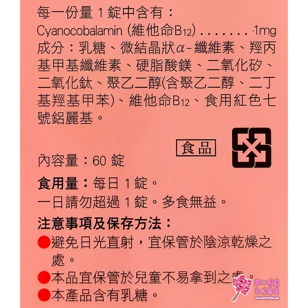 【人生製藥】 渡邊 維他命B12 膜衣錠 (60錠/瓶) 1000微克