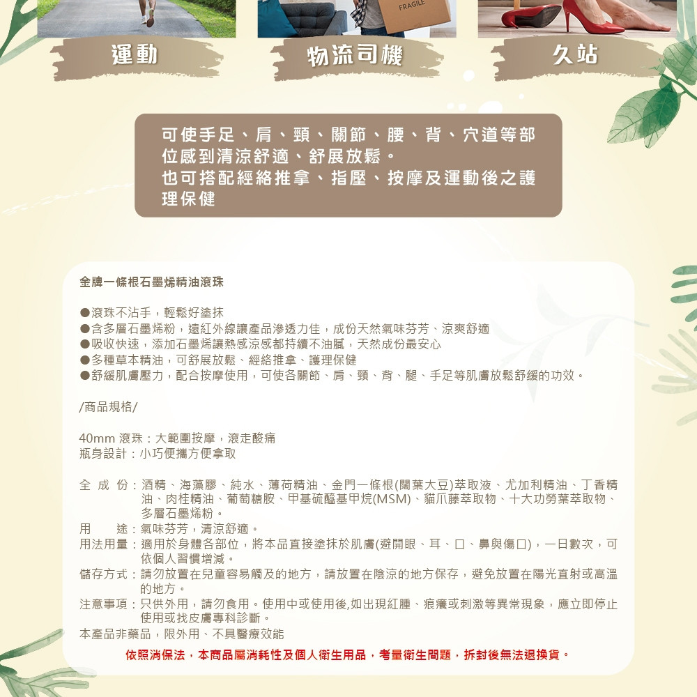 產品名稱 : 金牌一條根石墨烯精油滾珠瓶(40ml/瓶)